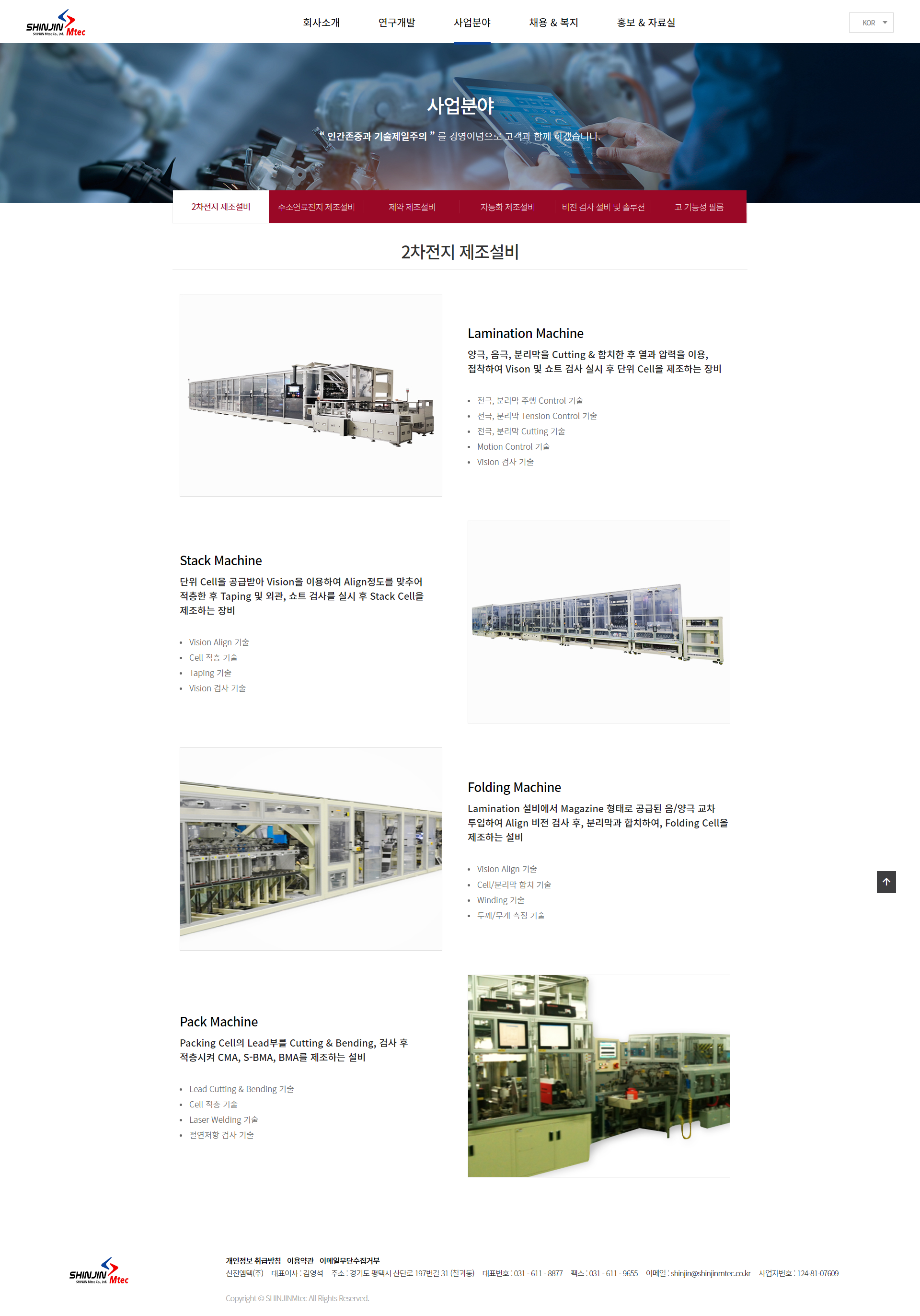 신진엠텍은 1973년 설립된 2차전지설비, 수소연료전지 설비, 제약 설비, 비전시스템과 검사설비 및 각종 산업용 자동차 설비 분야의 기업입니다.
